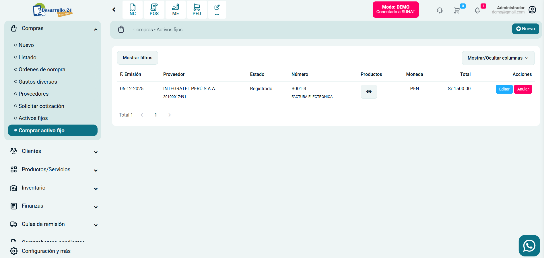 En esta área te ayudaremos a ingresar tus activos fijos de compras. Sigue estos pasos para realizarlo: