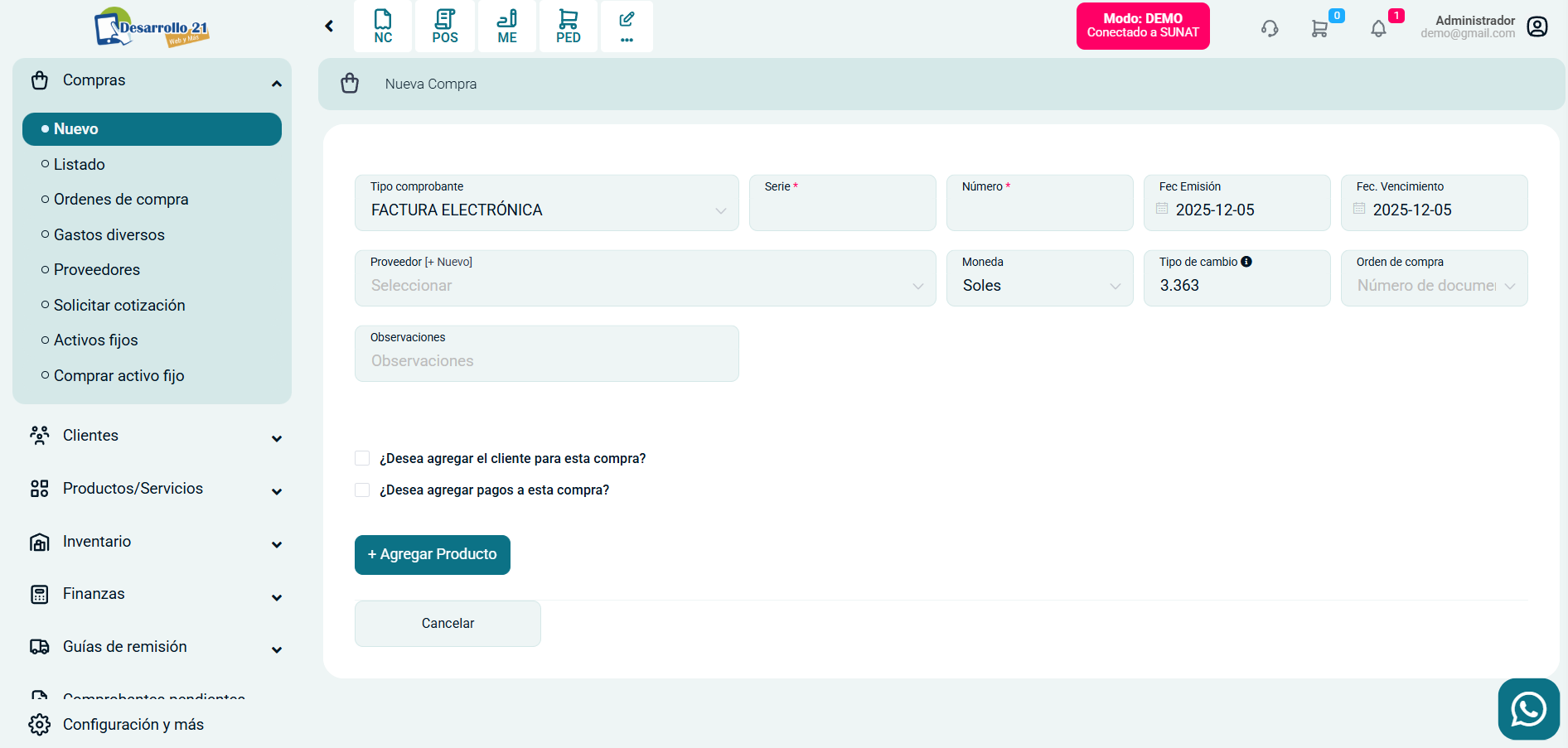 En esta artículo te ayudaremos a ingresar las compras realizadas. Sigue estos pasos para realizarlo: