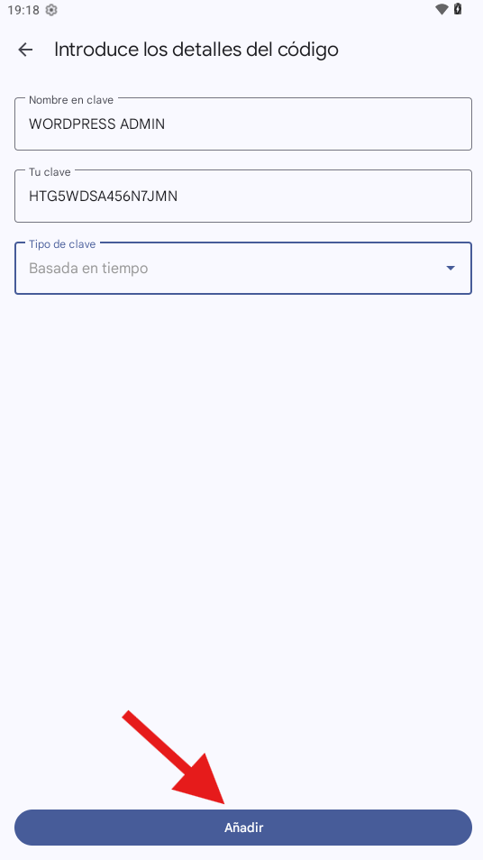 Ahora cada vez que lo necesitemos debemos ingresar ese numero de 6 digitos en la opción clave de su pagina wordpress