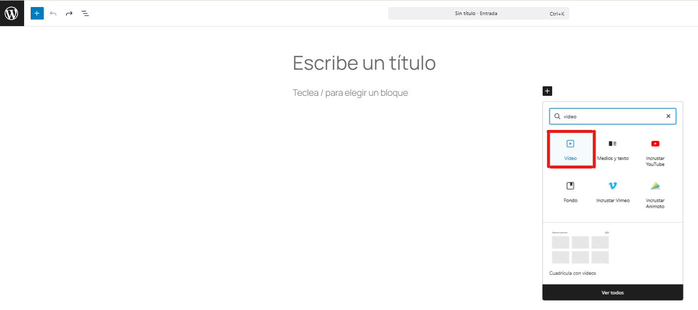 - Haz clic en el botón “+” y nos vamos a entradas.