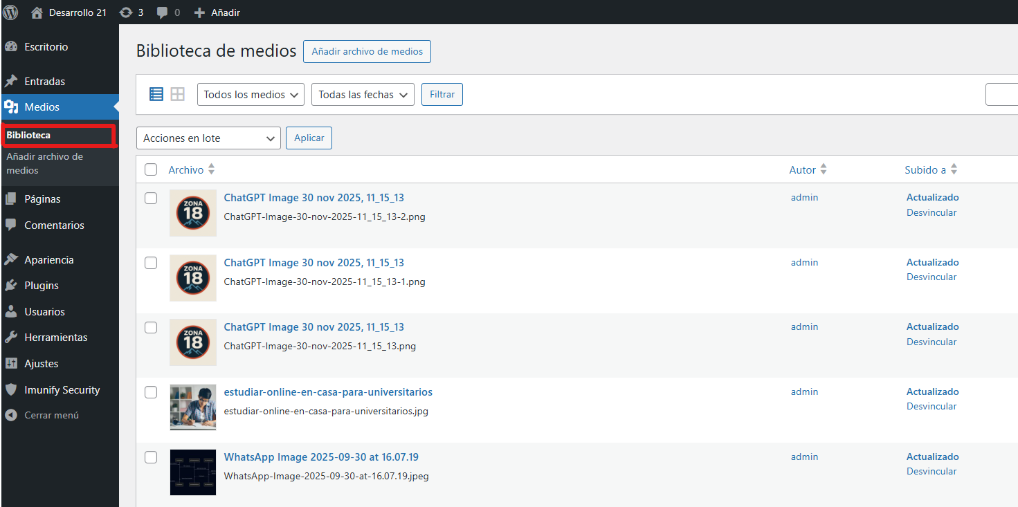 2. MANUAL DE BIBLIOTECA DE MEDIOS EN WORDPRESS