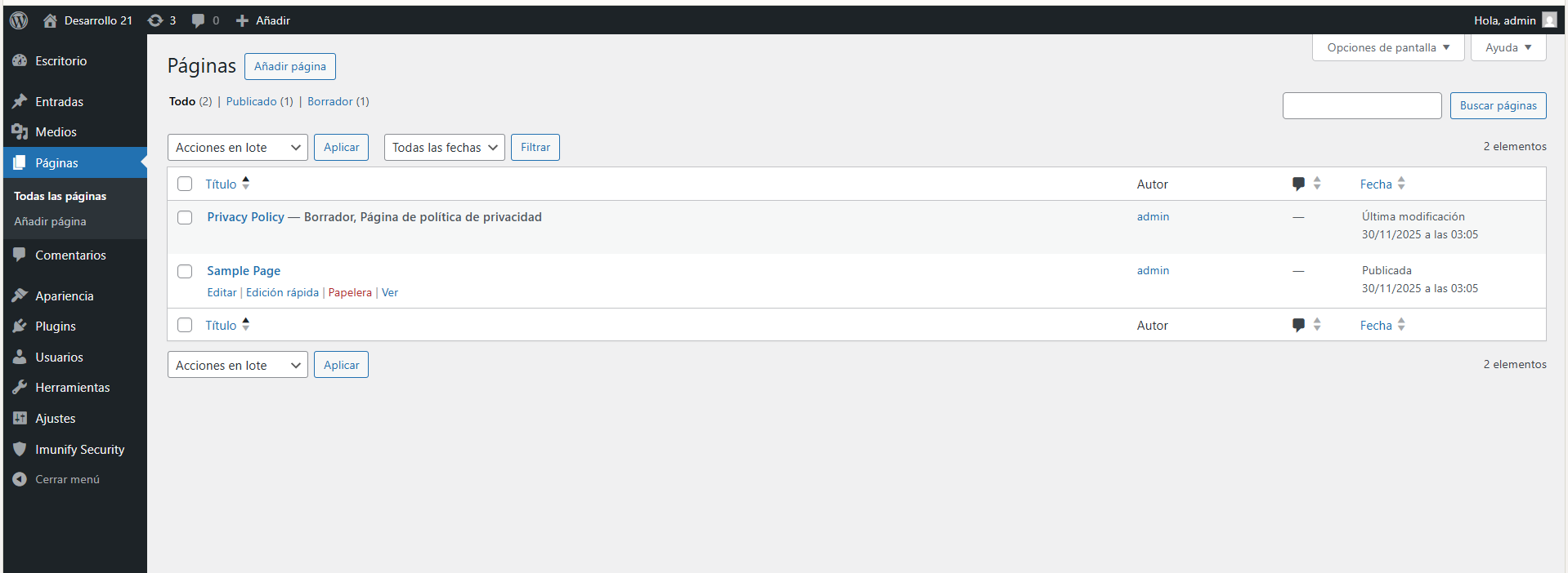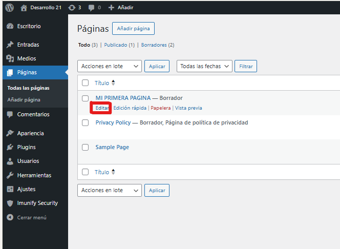- Verás un listado de todas las páginas creadas.