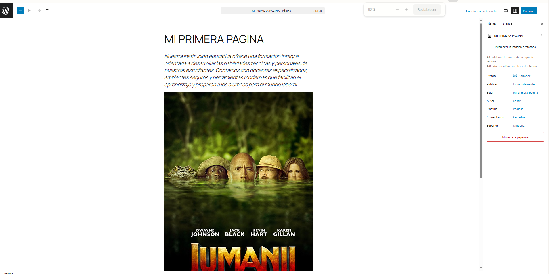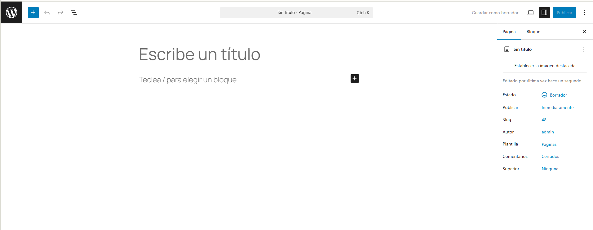 - Se abre el editor similar al de entradas.