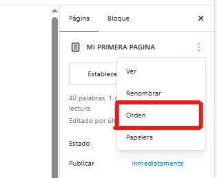 - En el panel derecho, localiza "Orden".