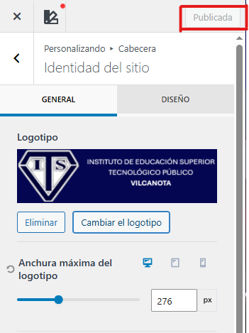 Paso 6: Una vez realizado el cambios nos vamos a la parte superior y publicamos el cambio realizado para que se pueda guardar .