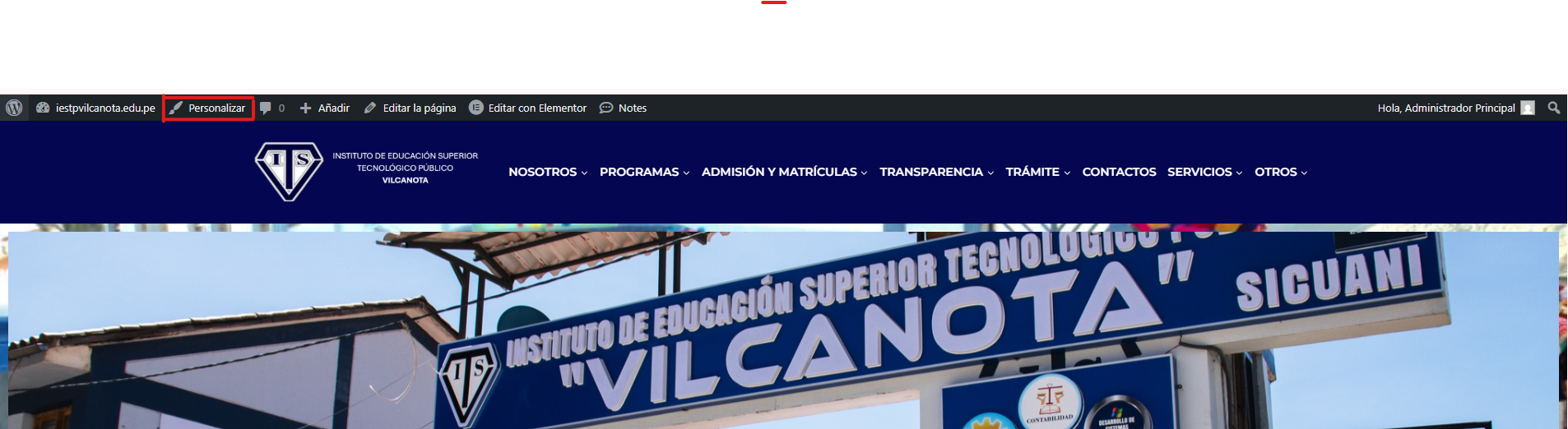 Paso 3 : Nos mandara a la pagina de nuestro Instituto donde presionaremos clic en Personalizar