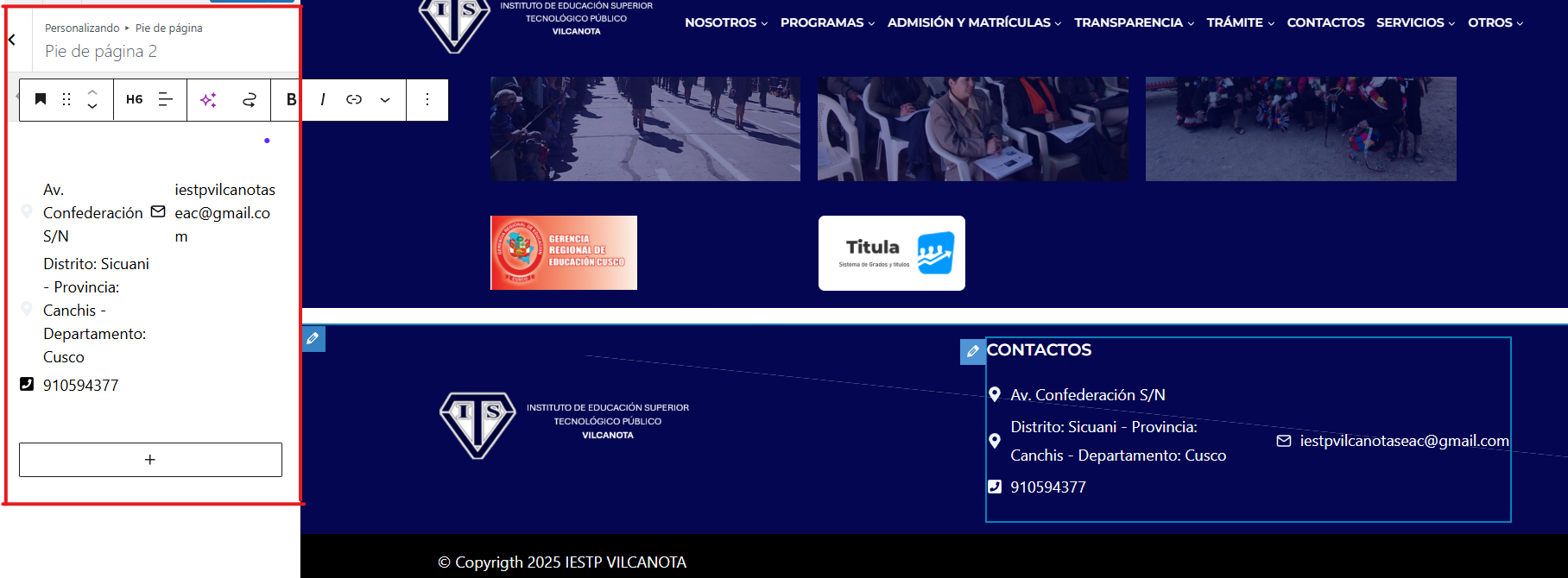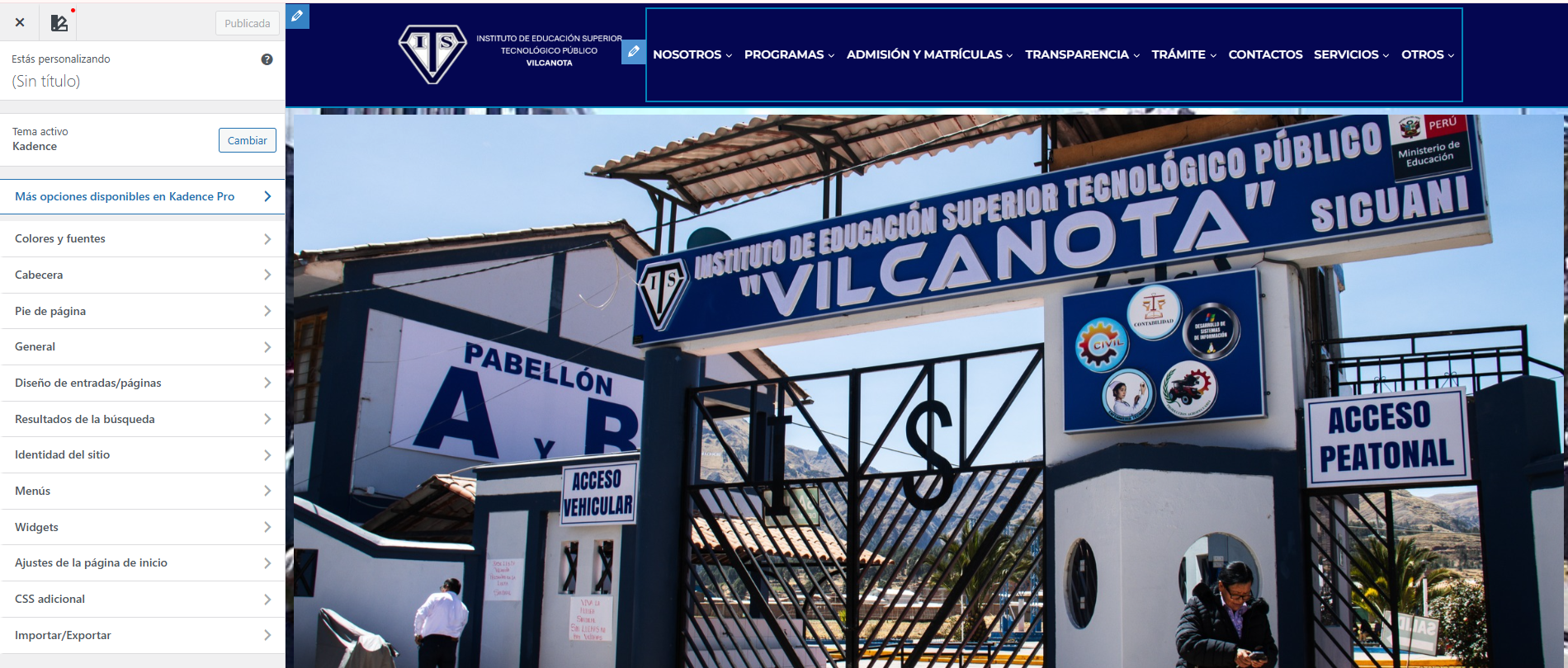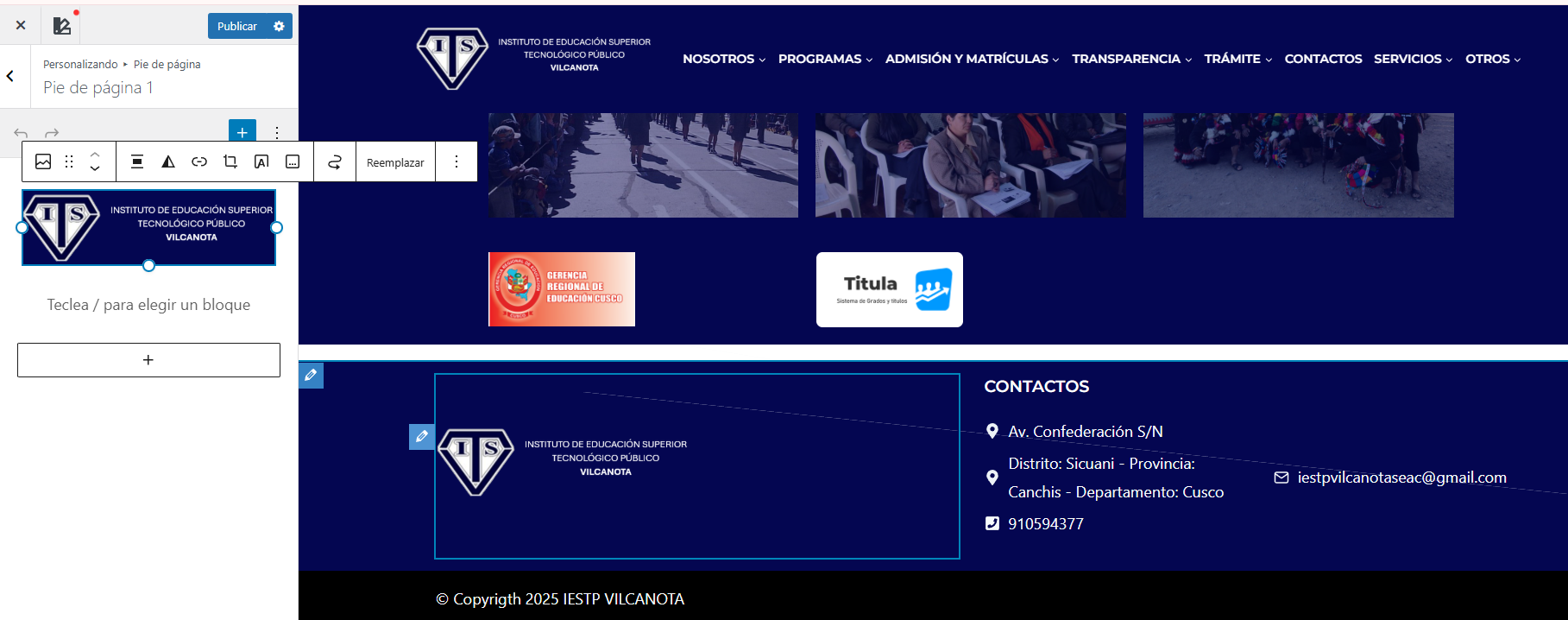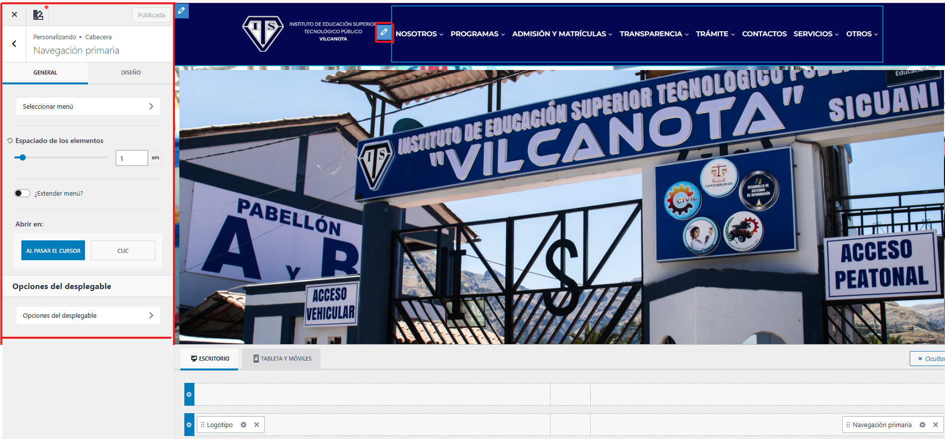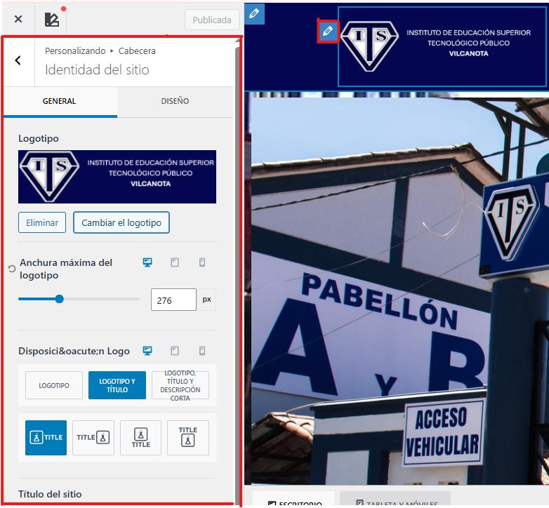 Paso 5: Para modificar el logo del instituto presionamos clic en el lápiz y nos mostrara las opciones necesarias para poder realizar ese cambio