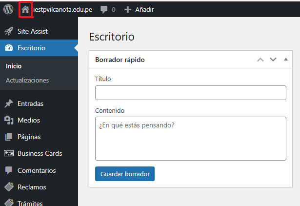 Paso 2: Una vez dentro presionamos clic en el icono de inicio