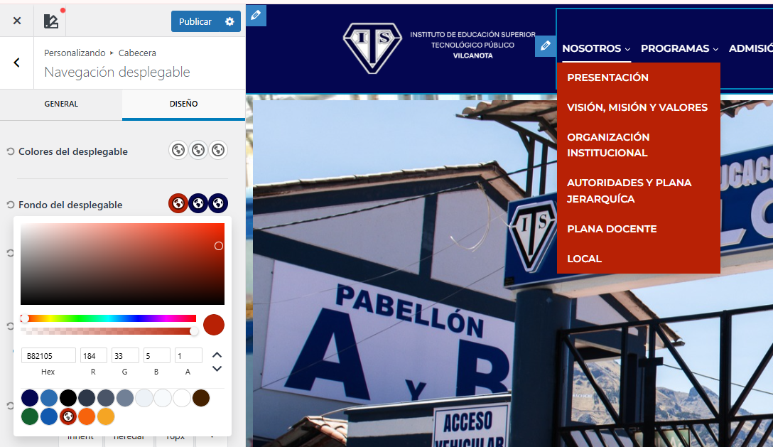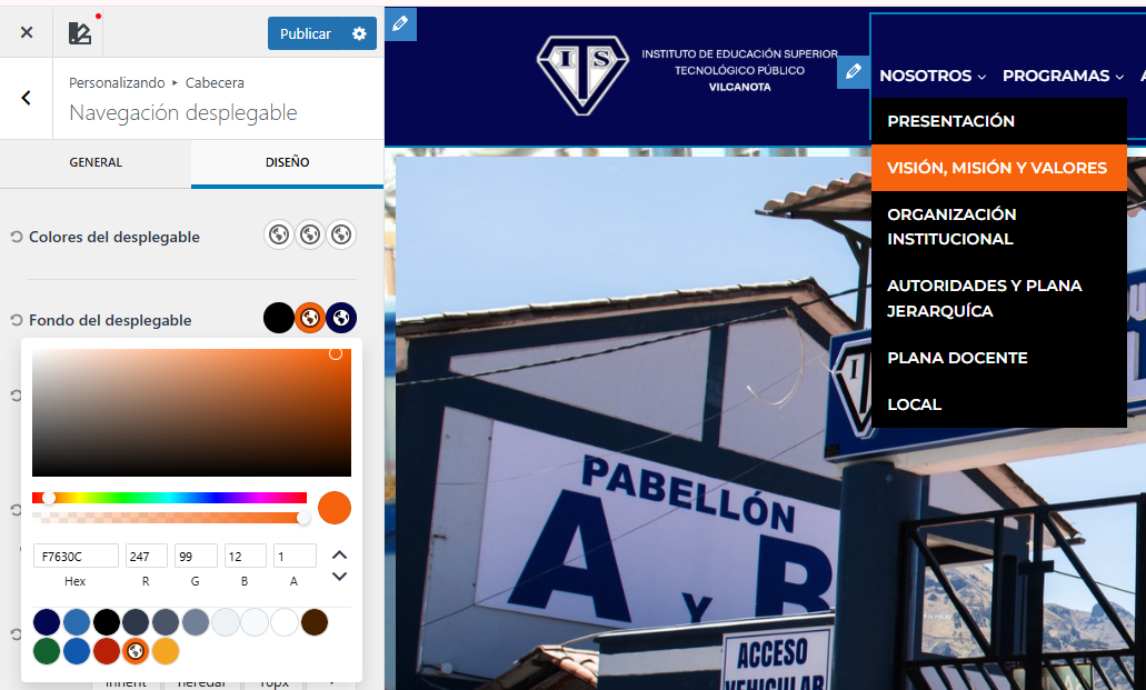 Paso 9: Escogemos el color que sea de nuestro agrado y presionamos el parte superior que dice Publicar para guardar el cambio