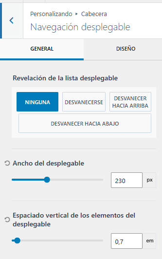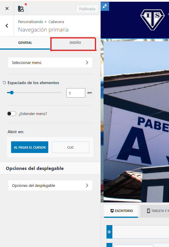 Una vez dentro de diseño podemos realizar estos cambios :