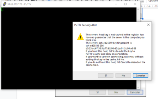 - Aperture putty, e ingrese su usuario e ip del servidor de la siguiente forma